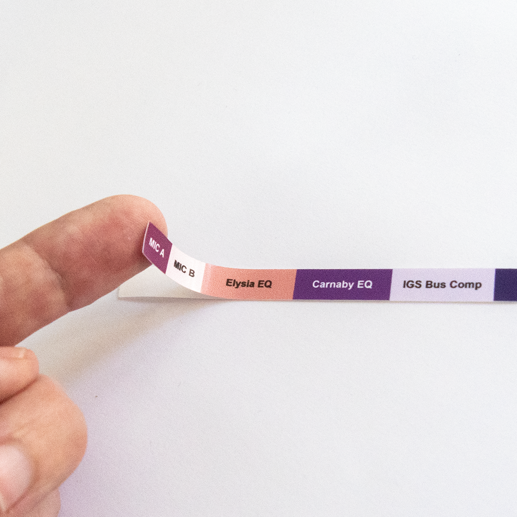 Our labels are made from durable vinyl and printed with high-quality latex ink, making them resistant to moisture and fading. They're scratch-resistant too and if you choose to stick your label to your patch bay, you can be assured that they'll stay stuck and won't curl up at the edges.